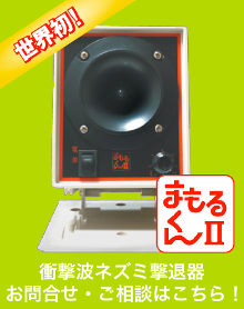 A:従来の製品は音圧が弱く(80dB/m)、また音波が一定であるため、ネズミが慣れ、効果の持続性がなかった。 当社の製品は、音圧が強く(105dB/m)、音波が自動可変(上下)するため、ネズミが慣れることができず、さらに衝撃波を加えることによって、効果を高めています。